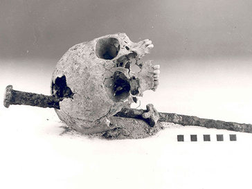 Der 1964 an der Kölner Straße bei Bauarbeiten freigelegte genagelte Schädel ist ein bedeutendes Zeitzeugnis. Es handelt sich um das Haupt einer Person, die gegen Mitte des 17. Jahrhunderts im heutigen Langenfeld Opfer einer Hinrichtung wurde. Dieser Fund vermittelt ein allzu anschauliches Bild davon, wie man die Gerichtsbarkeit früher handhabte. Er wirft aber auch unzählige Fragen auf. Beispielsweise nach der Identität der Person, ihrem Geschlecht und Aussehen, ihrem Alter und nicht zuletzt nach dem Grund für ihre grausame Hinrichtung.