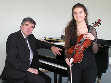 Katerina Chatzinikolau ist Musikstudentin an der Robert-Schumann-Hochschule in Düsseldorf in der Klasse von Professor Alexander Kramarov, der sie bereits zwölfjährig als Jungstudentin aufnahm. Seitdem kann sie von mehreren ersten Preisen bei „Jugend musiziert“, vor allem auf Bundesebene, berichten. Sie ist Mitglied des Yehudi-Menuhin-Vereins „Live Music Now“. Erich Theis schloss seine Studien in Düsseldorf in der Klasse von Professor Herbert Drechsel mit dem Konzertexamen ab. Seit 1991 hat er einen Lehrauftrag an der Robert-Schumann-Hochschule und ist seit 25 Jahren hauptamtlich als Musikpädagoge an der Musikschule der Stadt Monheim tätig.