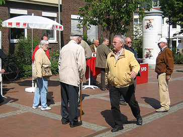 Anlässlich des Aktionstages „Gesund und sicher leben“ am 5. Mai 2011 erklärt der Vorsitzende der SPD-Arbeitsgemeinschaft 60 plus in Monheim am Rhein, Dieter Sander: „Unsere gut besuchte Aktion am Tag der älteren Generation vor dem Monheimer Rathaus zeigt, dass das derzeitige Gesundheitssystem besser werden muss. Wir Älteren wehren uns gegen Abzocke durch Zusatzbeiträge und gegen längere Wartezeiten beim Arzt. Warum sollen wir erst bezahlen, um anschließend behandelt zu werden? Zum Arzt gehen ist etwas anderes als Brötchen holen. Gerade die Älteren haben jahrzehntelang in das Gesundheitswesen eingezahlt. Heute werden wir teilweise schlechter behandelt als früher. Das macht mich wütend.“ Die SPD-Senioren am Infostand führten viele Gespräche mit den Passanten. Das Ergebnis kann so zusammengefasst werden: „Ältere müssen sich auf gute und menschenwürdige Pflege verlassen können. Pflegebedürftige dürfen nicht durch Zuzahlungen überfordert werden. Pflegekräfte müssen angemessen bezahlt werden.“ Dafür werde sich die SPD-AG 60 plus verstärkt einsetzen. Zu den zahlreichen Monheimer Bürgerinnen und Bürgern gesellte sich am Infostand viel politische Prominenz aus NRW. Diese war eigens nach Monheim gekommen, um der früheren Landtagspräsidentin und jetzigen stellvertretenden Vorsitzenden der AG 60 plus, Ingeborg Friebe, zum 80. Geburtstag im Ratssaal ihre besondere Ehre zu erweisen.