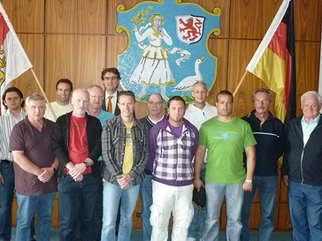 Eine neunköpfige Delegation aus der Partnerstadt in Niederösterreich ist noch bis Sonntag, den 3. Juli, zu Gast in Monheim. In Bochum sahen die Wiener Neustädter das Spiel Frankreich versus Kanada bei der Frauenfußball-WM. Beim MEGA-Energy-Cup im Rheinstadion gehen sie am heutigen Samstag selbst auf Torjagd. Im Ratssaal wurde die Delegation vom Beigeordneten Roland Liebermann, Kämmerer Max Herrmann sowie Guido Krämer, Finanzbereichsleiter und Vorsitzender der Betriebssportgemeinschaft, empfangen. Besonders herzlich begrüßt wurde Obmann Werner Oberleitner, der den partnerschaftlich-sportlichen Austausch mitbegründet hat und seit mittlerweile dreißig Jahren ein immer wieder gern gesehener Gast ist. Erstmals mit dabei war Stadtsprecher Dr. Rainer Spenger. Ein Gang durch die Monheimer Altstadt und Boule-Spielen im Park an der Kapellenstraße zählten zu den weiteren Programmpunkten.