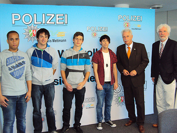 Unter dem großen Foto eines Kindes im Sheriff-Kostüm folgt der Satz: „Wenn Sie auch davon träumen, zu den Guten zu gehören, dann kommen Sie zur Polizei.“ Mitglieder der Jungen Union (JU) Langenfeld waren vergangene Woche der Einladung von Landrat Thomas Hendele gefolgt und durften sich in den Räumen (und Zellen) der Kreispolizei umschauen. Der Landrat, von Amts wegen zugleich Vorgesetzter der Ordnungshüter im Kreis Mettmann, empfing seine jungen Gäste im Presseraum der Dienststelle. In einem Infogespräch erzählte Hendele zunächst von den vielfältigen Herausforderungen der Polizei im Kreis und beantwortete gern die angeregten Fragen der JU-Mitglieder zum Dienstalltag.