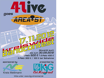 Folgende Angaben sind für die Anmeldung erforderlich: Name und Werdegang der Band, Namen, Geburtsjahre und Adressen der Bandmitglieder, Stilrichtung, Kontaktadresse mit Telefonnummer bzw. E-Mail-Adresse und eine Demo-CD oder ein USB-Stick mit maximal drei kurzen eigenen Titeln. Bewerbungen über Internet und E-Mail werden nicht angenommen. Die Unterlagen sind bis zum 30. September bei der KJG St. Konrad, Carsten Wannhof, St.-Konrad-Allee 41, 40723 Hilden, einzureichen. Eine Jury trifft anhand der Aufnahmen bis Mitte Oktober eine Vorauswahl von acht Bands, die zum eigentlichen Wettbewerb am 17. November zugelassen werden. Alle angemeldeten Bands werden benachrichtigt, ob sie dabei sind oder nicht. Veranstaltungsort ist das „Area 51“ in Hilden. Die ersten drei Preise betragen 500 Euro, 400 Euro und 300 Euro, die übrigen auftretenden Bands erhalten jeweils 100 Euro. Rückfragen beantwortet die Kulturabteilung des Kreises, Telefon 02104/992029, E-Mail kulturamt[at]kreis-mettmann.de, oder die KJG St. Konrad, Telefon 02103/337271, E-Mail info[at]kjg-st-konrad.de. Infos gibt es auch im Internet unter www.kreis-mettmann.de und www.kjg-st-konrad.de.