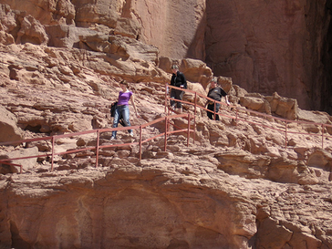 Der Timna-Park forderte Kletterkünste, im Wildgehege Hai Bar waren viele Wildtiere zu sehen, Strauße pickten neugierig an die Autoscheiben. An der Grenze zu Jordanien erwartete die Gruppe der Guide Eid J. Faraj, ein gebürtiger Jordanier mit äthiopischen Vorfahren, sympathisch, freundlich und hilfsbereit. Er hat in Iserlohn Deutsch gelernt, in Heidelberg Marketing studiert und wohnt mit Familie in Amman. „Ich bin in einem Zelt geboren, bin also Nomade gewesen und habe keine Geburtsurkunde. Mein Geburtsdatum wurde deshalb auf den 1.1.1952 festgelegt“, sagte der nette Guide. Eid begleitete die Gruppe bei einer Jeepfahrt durch das Wadi Rum, führte sie durch die nabatäische Königsstadt Petra (verbunden war dies mit einem Aufstieg zum Opferplatz), zeigte ihr die Kreuzfahrerburg Kerak, den Berg Nebo und die Ausgrabungsstätte Jerash, eine der besterhaltenen römischen Provinzstädte. Auch der Besuch von Amman, der jordanischen Hauptstadt, war lohnend, vor allem das archäologische Museum faszinierte. Der Guide führte die Gruppe außerdem in ein typisch jordanisches, bekanntes Restaurant, in dem alle Zutaten für Falafel (Hummus und Tahina, Bällchen aus Kichererbsen, rohes Gemüse, Salate, Gewürze und Fladenbrot) sowie Tee mit Minzeblättern serviert wurden – ein ganz großes Vergnügen.