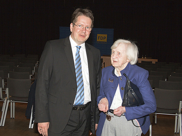 Unterstützung erhielten die Langenfelder Liberalen im Wahlkampf jetzt durch Elisabeth Schleifenbaum. Die rüstige Langenfelderin, die die FDP-Veranstaltung mit Christian Lindner in der Stadthalle besuchte, war in der Ära Franz Zündorf in den 1970er Jahren Mitglied des Langenfelder Stadtrates. Der örtliche FDP-Chef Frank Noack begrüßte die 85-Jährige im Namen des Ortsverbandes.