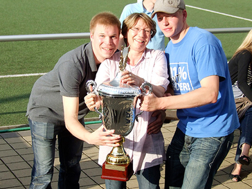 Das I-Tüpfelchen war dann auch der Turniersieg des „Teams Franz“, wodurch eben Franz Pollets Söhne Marcel und Marius Pollet zum ersten Mal den Pokal aus den Händen ihrer Mutter entgegennehmen konnten. Noch lange in den Abend hinein wurde bei Gegrilltem und gekühlten Getränken über alte und neue Zeiten geklönt. Und anschließend wurde in der Vereinskneipe, dem „Reusrather Brauhaus“, auch noch weit in die Nacht hinein weiter gefeiert. Schon heute sei auf das beliebte „After-Work-Turnier“ der Alten Herren am 15.7.2011 aufmerksam gemacht – der Höhepunkt des 50. Geburtstags der „Oldies“.