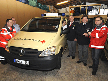 „Für alle Hilfsorganisationen in Nordrhein-Westfalen standen 63 Fahrzeuge zur Verteilung zur Verfügung“, so Welfens, „und wir hatten das Glück, ein Fahrzeug zu erhalten. So konnten wir einen 23 Jahre alten Ford-Transit-Bus ausmustern.“ Es handelt sich um einen modernen neunsitzigen Mercedes-Vito-Bus mit 135 PS. Er ist ausgestattet mit einer Standheizung und Anhängerkupplung, „Die Anhängerkupplung ist uns besonders wichtig, da wir über Anhänger verfügen, die mit technischem und Sanitätsmaterial beladen sind“, ergänzt Bereitschaftsleiter Guido Halbach. Außerdem verfügt das Fahrzeug über ein fest eingebautes analoges und ein digitales Funkgerät sowie ein digitales Handfunkgerät. „Damit sind wir nun auch für das neue digitale Funkzeitalter gerüstet“, bestätigt Halbach.