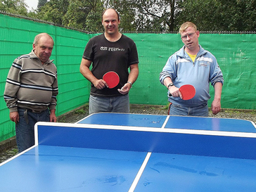 Sie stifteten der WFB-Werkstatt Kronprinzstraße eine Tischtennisplatte im Wert von 1.600 Euro. Diese wird vor allem während der Mittagspause eifrig genutzt. Der Außentisch mit feuerverzinktem Stahlgestell hat abgerundete Ecken, um Verletzungen zu vermeiden. In den mehr als 25 Jahren seines Bestehens unterstützte der Förderverein mit seinen 300 Mitgliedern die drei für den gesamten Südkreis zuständigen Langenfelder WFB-Werkstätten mit circa 260.000 Euro durch Anschaffungen und die Teilnahme an Veranstaltungen und vielen Aktivitäten nach seinem Motto: „Freude am Tun – Tun zur Freude“. (jste)