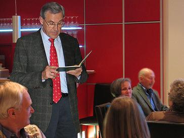 Der Vorsitzende des Monheimer Freundeskreises Bourg-la-Reine, Dr. Ulrich Steffen, begrüßte die Gäste und zitierte einige launige Ratschläge zu gutem Essen und Trinken. Anschließend gab Geschäftsführer Friedrich Föste einen kurzen Überblick über die Geschichte der französischen Wein-Spezialität. Der Beaujolais primeur wird ausschließlich aus der Rebsorte Gamay gekeltert, die sehr fruchtige Rotweine hervorbringt. Die burgundischen Winzer erstritten sich eine Ausnahmegenehmigung vom französischen Weinrecht, die es ihnen erlaubte, den neuen Wein schon ab dem dritten November-Donnerstag zu verkaufen. Ursprünglich genossen den jungen Primeur reiche Engländer, die für sich und ihre Freunde den ersten neuen Wein aus dem Burgund beschafften. Daraus entwickelte sich im Laufe der Zeit ein wahrer Kult um den allerneuesten Wein der Saison.