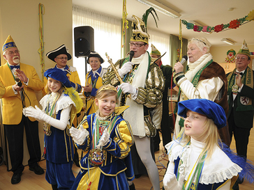 Der Höhepunkt des humorvollen Nachmittages war der Empfang des Langenfelder Prinzenpaares Heinrich I. und Brigitte I. mit ihrem Gefolge sowie der Kinderprinzessin Jana I. mit ihren beiden Paginnen Eileen und Lucie. Sie boten der närrischen Begegnungsstätte ein berauschendes Programm mit ihren Vorträgen und dem Prinzenlied. Kinderprinzessin Jana I. rundete mit ihren Paginnen mit einer extra Tanzeinlage den Auftritt ab. Nach einem Schunkellied von Festkomitee-Mitglied Helmut Schoos wurden die Abordnungen mit großem Applaus und dreifachem „Langenfeld Helau“ verabschiedet. Im Anschluss des Programms wurde wieder traditionell Kartoffelsalat mit Würstchen serviert.