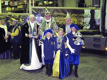 410 PS, mit Hänger fast 16 Meter lang, mit silberner, spiegelnder Folie umhüllt − so sieht der Beitrag des Langenfelder Industrievereins zum Karnevalszug 2012 aus. Dienstagabend wurde der erneut unter Mitwirkung von zehn Schülerinnen und Schülern der Felix-Metzmacher-Schule gefertigte Prunkwagen in der Halle von Kisten Jansen präsentiert. Das Wagenmotto lautet „Alle Welt in Langenfeld, Langenfelder in aller Welt“, und die Spiegel sollen den Besuchern am Rand des närrischen Lindwurms versinnbildlichen, dass sie selbst ihre Heimatstadt repräsentieren. „Auch Du bist Langenfeld!“ Fast 40 mitfahrende Vereinsmitglieder und Wagenbauer werden – in unterschiedliche Nationalflaggen gehüllt – die erstrebte Weltoffenheit zusätzlich deutlich werden lassen. Und natürlich Süßigkeiten unters Volk bringen. Der Koloss bringt 18 Tonnen auf die Waage, „fast alles Wurfmaterial“, lacht Ralf Eigenbrodt, „Wagenbau-Meister“ des Industrievereins. Auch die Langenfelder Tollitäten zeigten sich beeindruckt und schmückten die Verantwortlichen und fleißigen Helfer mit Orden. Für Gerhard Witte, den Vorsitzenden des Industrievereins und – ebenso wie Ralf Eigenbrodt − Ehrensenator des Langenfelder Festkomitees, gibt es mindestens zwei gute Gründe für den Wagenbau und die Zugteilnahme: „Auf der Suche nach Arbeitskräften ist die Hilfe beim Wagenbau durch die Schüler für uns eine Art Talentsuche“; wer dabei Spaß an bestimmten Tätigkeiten zeige oder bekomme, dem sei bei der Berufswahl geholfen. Dazu kommt die Chance, dass der Verein sich nach außen präsentiert und die gemeinsame Arbeit an einem solchen Projekt auch den Zusammenhalt der Mitglieder fördert. Immerhin waren die Wagenbauer seit November 2011 jeden Samstag im Einsatz. (mmo)