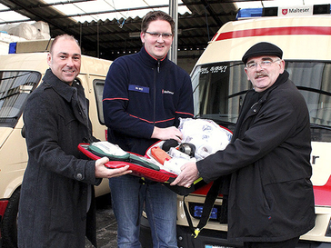Zuletzt auf dem Weihnachtsmarkt haben die Malteser der CDU Immigrath helfend zur Seite gestanden. Aus dem Erlös haben die Malteser nun einen Notfallrucksack angeschafft, der damit allen Langenfeldern zu Gute kommt. Symbolisch überreichten jetzt der CDU-Ortsvorsitzende Rolf Kamp und sein Stellvertreter Daniel Slomka den Rucksack an den Leiter des Einsatzdienstes Christian Nitz.