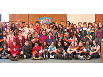 Mit dabei: ihre Deutsch-Lehrerinnen Laetitia Vaz und Eléonore Luxardo. Die 13- bis 14-jährigen Franzosen wurden herzlich empfangen von ihren gleichaltrigen Freunden, in deren Familien die jungen Gäste auch untergebracht waren. Alle Schüler lernen seit circa drei Jahren Deutsch und wollten ihre Sprachkenntnisse jetzt in der Praxis anwenden. Für ein abwechslungsreiches Besuchsprogramm sorgten die Französisch-Lehrerinnen Birgit Behnke (Lise-Meitner-Realschule) und Andrea Welzel (Otto-Hahn-Gymnasium). Unter anderem gab es einen Ausflug nach Köln, mit Besuch des Römisch-Germanischen Museums, einer Dom-Besichtigung und einer Führung durch die Römerstadt. Eine neue Erfahrung war die Teilnahme am Unterricht in einer deutschen Schule. Bürgermeister Daniel Zimmermann begrüßte die Franzosen im Rathaus und erläuterte Monheimer Sehenswürdigkeiten – zur Freude der Gäste in ihrer Muttersprache.