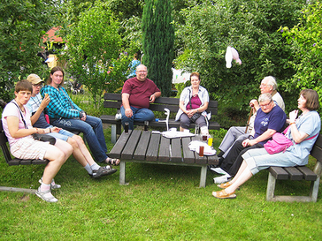 Der herrliche Erlebnisgarten in der WFB Lise-Meitner-Straße bot viel Platz für ein Bühnenprogramm und viele andere Aktivitäten. Die Mitarbeiter beteiligten sich mit Tanz- und Theatervorführungen und der Musikgruppe „Kellergang“ am Programm. Clown Ötti („Ich bin überall“) bastelte Figuren aus aufblasbaren Schlangen, es gab Gegrilltes mit Bratkartoffeln, Eis, Getränke, Waffeln, Kaffee und Kuchen, exotische Cocktails und Salate für jeden Appetit. Lebendkicker, Torschießen, Malen und Basteln, ein Verkaufsstand mit selbst gefertigten Artikeln, Karaoke, Autorennbahn, der WFB-Drachen und Spielmöglichkeiten zogen viele Besucher an. Am Abend unterhielt die Band „Glasgow Kiss“ mit Coversongs von den 60ern bis heute die Besucher.