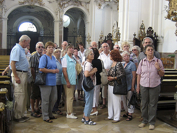 Reiseleiter Hans-Dieter Steinbrecher hatte ein abwechslungsreiches Programm mit viel persönlicher Freizeit vorbereitet. Eine Stadtrundfahrt brachte den Teilnehmern das grüne München mit Schloss Nymphenburg, das sportliche München mit Allianz-Arena, Olympiastadion und BMW-Welt und das alte München mit dem Glockenspiel vor dem Turm des Rathauses auf dem Marienplatz näher. Höhepunkt des nächsten Tages war nach einer Fahrt durch Oberbayern und das Allgäu der Besuch des weltberühmten Schlosses Neuschwanstein. Der wegen seiner vielen Türme und Zinnen wie ein Märchenschloss erscheinende Prachtbau wurde von König Ludwig II. erbaut; sein mysteriöser Tod jährte sich in diesem Jahr zum 125. Male. Ein Zwischenstopp in Füssen und der Besuch des Stadtfestes beendeten diesen eindrucksvollen Tag. Nächstes Ziel war der Ammersee und die Schiffsfahrt von Herrsching nach Dießen. Hier beeindruckten im Augustiner-Chorherrenstift der Hochaltar und die farbenprächtigen Deckenbilder. Südlich von Herrsching erhebt sich der heilige Berg Andechs mit seinem Benediktinerkloster. Im schattigen Biergarten des Klostergasthofes konnte das köstliche Andechser Bier genossen werden und gestärkt die restlichen Stufen zur im Rokokostil ausgestatteten Wallfahrtskirche gemeistert werden, wo der Komponist Carl Orff beigesetzt ist. Zum Abschluss der Reise wurde eine Münchener Traditionsgaststätte besucht und bei Schweinsbraten und Weißbier der Gaumen verwöhnt. Bei weiß-blauem Kaiserwetter verlebten die Senioren der Monheimer SPD eine schöne Zeit in Deutschlands heimlicher Hauptstadt und seiner Umgebung.