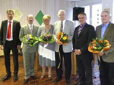 Dorthin hatten der langjährige Vorsitzende Hans Hennecke und sein Vorstandsteam die derzeit 288 Vereinsmitglieder und Gäste zu einer besonderen Sitzung geladen, der letzten unter der Leitung von Hans Hennecke. Nach den üblichen Berichten und der (einstimmig erteilten) Entlastung des Vorstandes für das Jahr 2011 war es zunächst der kürzlich in den Ruhestand verabschiedete ehemalige Reha-Koordinator Ernst Michael Bendorf, der als Wahlleiter einige Dankesworte an Hans Hennecke richtete. „Er ist der personifizierte Förderverein“, so Bendorf. Dem schlossen sich die WFB-Fachbereichsleiterinnen Carline Sander und Gabriele Esser mit einem Geschenk an Hennecke und Blumen für die anderen drei Vorstandsmitglieder an. Auch Heinrich Feilhauer, Geschäftsführer der WFB Werkstätten, fand wohlwollende Worte des Dankes für Hans Hennecke und 27 Jahre Fördervereins-Vorsitz.