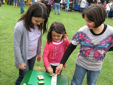 „Fällt der Dreidel auf die Goldkante, damit ich ihn gewinne?“ „Schaffe ich (als Erwachsener) die 30 Sekunden, um den Dreidel mitnehmen zu können?“ „Komme ich auf die Liste der Besten mit der längsten Zeit?“ Das waren immer wieder spannungsgeladene Momente am Dreidelstand der Elisabeth & Bernhard Weik-Stiftung. Nach dem Stadtfest ist das Internationale Kinder- und Familienfest im Freizeitpark Langfort jedes Jahr die zweite Möglichkeit, am Dreidelstand seine Geschicklichkeit und sein Glück auszuprobieren. „Mit dem Dreidel kann man auch wunderbar die Aufgaben verteilen“, erklärte Bernhard Weik den Besuchern. „Brötchen holen, das Zimmer aufräumen, die Hausaufgaben erledigen, den Müll wegbringen oder Geschirr spülen bzw. abtrocknen“, zählte Weik auf. Da braucht man nur auszumachen, welche der vier Farben des Dreidels (das ist ein viereckiger Kreisel) welchen Aufgaben zugeordnet wird. Und schon kann das Spiel oder die Aufgabenverteilung beginnen. (jste/FST)