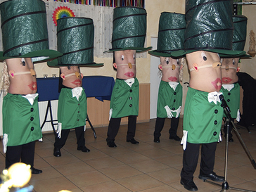 Im Anschluss zog das Langenfelder Prinzenpaar Brigitte I. und Heinrich I. mit großem Gefolge in den Saal ein. Die Prinzessin freute sich besonders über das Wiedersehen mit zwei ehemaligen Schulkameraden und ihrem Jugendflirt Joachim Göpel. Gemeinsam wurde das Mottolied des Prinzenpaares gesungen. Den Prinzenorden erhielten König Guido Joch und Schützenbruder Lothar Klaas. Das Festkomitee stattete Bruno Steffen mit dem Sessionsorden aus. Nach dem Auszug der Narrenschar war noch lange nicht Schluss im Programm. Das Highlight des Abends hatten sich die Freunde des Königspaares ausgedacht. Als singende „Zylinderkompanie“ zogen sieben ulkige Gestalten ein. Unter den übergroßen Zylindern der Akteure schauten lustige Gesichter hervor, die auf die nackten Oberkörper der Männer gemalt waren. Durch die Bewegung der „Bauchmuskeln“ wurden diese Gesichter zum Leben erweckt. Vom Königspaar und den übrigen Gästen ernteten sie lang anhaltenden Beifall.