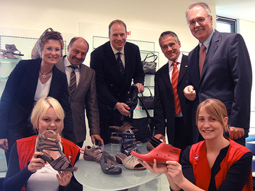 Äußerst gespannt hörten die eingeladenen Gäste – der Landtagsabgeordnete Hans-Dieter Clauser, Bürgermeister Frank Schneider nebst Wirtschaftsförderer Rainer Düx, Margarete Landen von der Agentur für Arbeit Langenfeld sowie die beim Landtag beschäftigten zwei Praktikanten − dem Prokuristen Gerd Koschik zu. Auch wenn ara shoes in der ganzen Welt mit seinen Produktions- und Vertriebsstätten vertreten ist, wird großer Wert auf Nachhaltigkeit gelegt. Bis heute ist die ara shoes AG ein Familienunternehmen, dessen Hauptverwaltung seit sechs Jahrzehnten in Langenfeld sitzt.