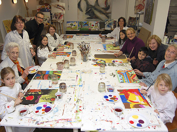 Michaela Dreßen hatte in dem von ihr geführten Kunsthaus Wiescheid zehn Wochen lang Jung und Alt bei kreativen Begegnungen im Rahmen des Kooperationsprojektes von CBT und Kinderschutzbund begleitet. Finanzielle Unterstützung gab es dabei durch den Gesellschaftsfond der Stadt. Die Grundidee war dabei, Kinder im Grundschulalter und betagte Senioren über die Kunst zusammenzuführen. Im künstlerischen Dialog erfuhren nach Dreßens Worten „beide Altersgruppen mehr vom anderen“. Bei den wöchentlichen Treffs im Atelier ging es zunächst ums Kennenlernen. Spielerisch probierte die Gruppe danach Farben und Pinsel aus, wobei gemeinsame Bilder und Einzelwerke entstanden. Die ausgebildete Kunsttherapeutin Dreßen legte nach eigenen Angaben sowohl Wert auf den kreativen Prozess als auch auf Resultate, die die jungen und betagten Künstler mit Stolz erfüllen. Zu sehen sind die entstandenen Werke vom 21. August bis zum 13. September 2012. Die Ausstellungseröffnung findet am Dienstag, den 21. August 2012, um 17 Uhr im Rathaus statt.