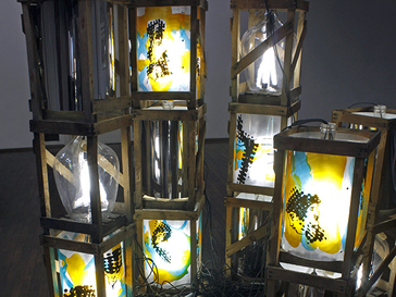 Der Künstler beschäftigt sich neben Malerei und Zeichnung auch intensiv mit malereibezogenen Installationen. Dieses Spektrum künstlerischen Schaffens wird derzeit in den Räumen von Haus Graven gezeigt. Doris Wasserrab-Noelte vom Förderverein und Bürgermeister Frank Schneider begrüßten die zahlreichen Gäste und insbesondere den vor wenigen Tagen zum Aufbau der Ausstellung aus Istanbul angereisten Künstler, der dort an einem von der Kunststiftung NRW geförderten Projekt arbeitet. Die Kunsthistorikerin Ulrike Lua stellte den Gästen der Vernissage den Künstler und seine Malerei vor.
