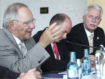 Schäuble verwies hier besonders auf die im letzten Jahr erfolgte Entscheidung der Bundesregierung, die Kosten der Grundsicherung zu übernehmen. Diese wurde als großer Schritt von den Landräten anerkannt. Leider sei jedoch die Arbeit der Gemeindefinanzkommission und damit die Bearbeitung grundsätzlicher Fragen zunächst beendet, bedauerte Landrat Thomas Hendele als stellvertretender LKT-Präsident. „Hier liegt eine Vielzahl von sehr guten Vorschlägen aus dem kommunalen Bereich auf Eis, die wieder in den Fokus rücken sollten.” Bundesfinanzminister Schäuble stimmte mit den Landräten überein, dass in diesem Bereich noch viele Maßnahmen notwendig seien. Besonders am Herzen lag den Kommunalpolitikern die Frage der immensen Kosten der Eingliederungshilfe für behinderte Menschen, die von den Kommunen nicht mehr getragen werden können. Der Bundesfinanzminister stimmte mit den Landräten überein, dass diese Frage in enger Zusammenarbeit mit den Ländern und den kommunalen Spitzenverbänden gelöst werden müsse. Die Bundesregierung werde sich ihrer Verantwortung nicht entziehen, versicherte Finanzminister Schäuble. Er sei bereit, sehr kurzfristig mit den Ländern zu verhandeln.
