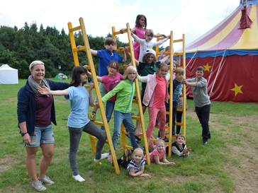 Zwischen Bauwagen und Akrobatikmatten flitzen derzeit wieder zahlreiche kleine Artisten über die Baumberger Bürgerwiese.