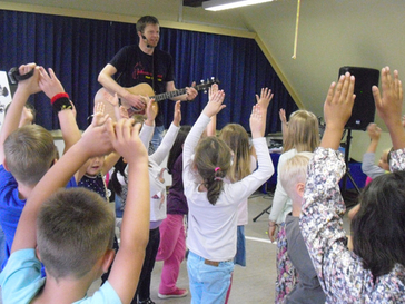 Der hatte im Vorfeld mit der kommissarischen Leitung Kathrin Schwanke einen Kinderliedermacher aus Köln gebucht. Johannes Kleist hatte für die KiTa-Kinder jede Menge Geschichten und Musik im Gepäck und veranstaltete in der Turnhalle ein tolles Mitmachkonzert. Die Kinder waren begeistert und aktiv dabei. „Trotz der Alternativlösung wegen der schlechten Wetterlage war es ein schönes Fest im kleineren Rahmen, bei dem vor allem die Kinder auf ihre Kosten gekommen sind”, resümierte Kathrin Schwanke den Geburtstag der Kita. In den verbleibenden Tagen vor den Ferien werden die im Vorfeld geplanten Aktionen für die Kinder im Rahmen einer Fest-Aktionswoche nachgeholt.