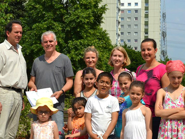 „Damit der Spielplatz zu einem Kommunikationsraum werden kann, an dem sich Familien gerne treffen, stellen wir zusätzliche Bänke auf“, erläuterte der Garten- und Landschaftsarchitekt. Hecken schirmen den Spielplatz künftig ein wenig ab und ermöglichen den Kindern unbeschwertes Spielen. Außerdem wurden bereits neue Bäume gepflanzt, die im Sommer angenehme Schatten werfen werden. Zu verdanken haben die Kinder den neuen Spielplatz unter anderem Sylvia Maral und Kerstin Zergani vom AWO-Nachbarschaftstreff. Sie hatten die Mieter und Nachbarn dabei unterstützt, einen Bewerbungsfilm zu drehen, den sie beim Spielplatzwettbewerb zum Jubiläum „50 Jahre Sahle Wohnen“ einreichten. Damit gewannen sie den zweiten Platz: die Umgestaltung ihres Spielplatzes. Nun freuen sich die Kinder schon auf die offizielle Eröffnung ihres neuen Spielplatzes am Dienstag, den 23.7., um 18 Uhr. Dann dürfen sie ihre neuen Spielgeräte zum ersten Mal ausprobieren. Natürlich versprachen sie Frank Merz, dass sie gut auf ihren Spielplatz achtgeben werden.