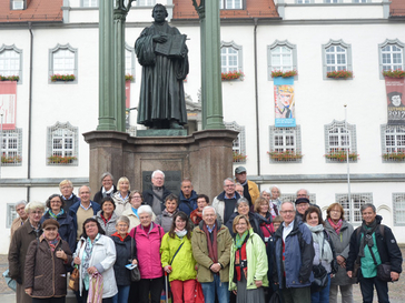 Für vier Tage begaben sich 37 Teilnehmer der evangelischen und katholischen Kirchengemeinden in Monheim zum ersten Mal auf eine gemeinsame ökumenische Reise. In Eisleben und Wittenberg informierten sie sich über Martin Luther, sein Leben und die Reformation. Gleichzeitig lernte die Gruppe auch die Stätten für die Feierlichkeiten im Rahmen des Reformationsjubiläums 2017 kennen. Darüber hinaus standen das Museum der Stiftung Bauhaus und die Meisterhäuser in Dessau auf dem Programm. Bei wunderschönem Wetter wurde der nahegelegene Landschaftspark Wörlitz, ein Weltkulturerbe, besucht. Zum Abschluss besichtigten die Monheimer das Zisterzienserinnen Kloster Helfta, das nach der Wende von Nonnen wieder „zum Leben erweckt” wurde. Inzwischen besteht der Konvent aus zwölf Ordensschwestern. Organisiert wurde die Reise von Ursula Budde, der Vorsitzenden des Pfarrgemeinderats von St. Gereon und Dionysius, mit dem Reiseveranstalter KultourNatour aus Dormagen mit einer sehr kompetenten Reiseleiterin. Die reichhaltigen Erlebnisse bildeten auch die Grundlage für viele Gespräche untereinander. Pfarrer Till-Karsten Hesse von der evangelischen und Pfarrer Burkhard Hoffmann von der katholischen Kirchengemeinde hielten abwechselnd die Morgenandachten im Bus, so dass sich die Gruppe als „rollende ökumenische Gemeinde” fühlte. Beeindruckend war auch der Abschlussgottesdienst in einer katholischen Gemeinde in Dessau. Gemeinsam unterwegs, erlebten die Reisenden eine fruchtbare und lebendige Ökumene.