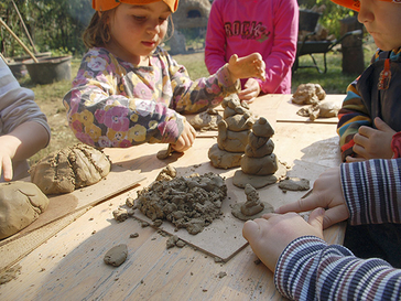 Mit Hilfe des professionellen Lehmbauers Arndt Redenz aus Aachen ist fünf Tage lang mit fleißigen Helfern aus der Kindergartentruppe (Kinder, Eltern und Erzieher) mit viel Spaß und Freude ein funktionstüchtiger und schöner Lehmofen entstanden. Die Kinder sind in den Bauprozess voll mit eingebunden worden, so wurde der Lehm von ihnen selbst „gestampft“: Mit bloßen Füßen entsteht mit etwas Wasser aus trockenem Lehm eine tonartige Masse, aus der Figuren geformt werden können. Das Waldkindergarten-Gelände ist dann von den Kindern mit kleinen Lehmfiguren verschönert worden. Sogar mehrere Lehmbäder konnten die Kinder genießen.