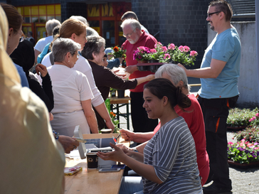 1000 Balkon- und Beetpflanzen waren am Mittwochmorgen zu vergeben und schnell vergriffen. Mehr als 200 Personen kamen auf den Ernst-Reuter-Platz, um sich daran zu beteiligen, dass das Berliner Viertel weiter aufblüht. Organisiert hatten das Ganze einmal mehr engagierte Bewohner und Mitstreiter aus der Zukunftswerkstatt. Auch die LEG war mit im Boot. Stadtteil-Manager Georg Scheyer hatte mit den Ehrenamtlern Samantha Satwinder, Eva Ehmann, Fatma Boctas, Helmut Nieswand und Manfred Huber alle Hände voll zu tun.