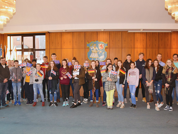 Monheim am Rhein pflegt nicht nur Freundschaften in seine sechs Partnerstädte, sondern fördert den Aufbau interkultureller Kompetenz auch über Schüleraustausch-Aktivitäten in weitere Länder. Eine Delegation mit 27 englischen Schülerinnen und Schülern sowie drei Lehrkräften von der St. Bartholomew's School in Newbury weilte vom 29. Januar bis zum 5. Februar in Monheimer Gastfamilien. Zu deren Besuchsprogramm gehörte neben den Besichtigungen des Kölner Doms, des Bonner Hauses der Geschichte und des Düsseldorfer Filmmuseums auch ein kleiner Empfang bei Bürgermeister Daniel Zimmermann. Das Stadtoberhaupt begrüßte die Reisegruppe sowie OHG-Lehrer Maikel Grün im Ratssaal und stellte ihnen Monheim am Rhein in einer Videopräsentation vor.