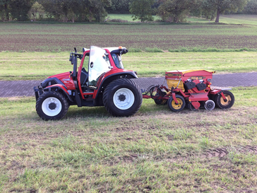 Ein Traktor verteilt Körnchen auf 240.000 Quadratmetern.
