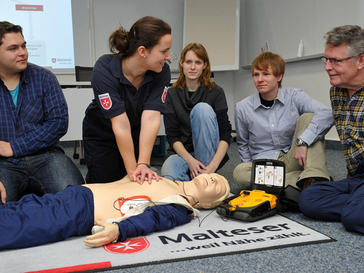 In einem Erste-Hilfe-Grundkurs der Malteser lernen die Teilnehmer in acht Doppelstunden alle nötigen Handgriffe von der Herz-Lungen-Wiederbelebung bis zum Anlegen von Verbänden.