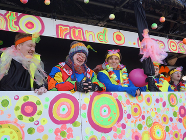 „Auf Langenfeld“ – „Helau“. „Auf die Lebenshilfe“ – „Helau“. Kaum hatte sich der Langenfelder Karnevals-Lindwurm in Bewegung gesetzt, hatte Helmut Schoos vom Festkomitee Langenfeler Karneval schon die ersten Rufe initiiert. Voller Begeisterung war die 60 Personen große Truppe der Lebenshilfe-Bewohner und ihrer Betreuer unter dem Motto „Et jeht rund – mer sin bunt“ unterwegs. Wohnverbundleiter Stefan Stahmann steuerte auch diesmal den großen LKW, der in langer und liebevoller Vorbereitung selbst gestaltet wurde. Wie auch die Kostüme mit geringelten Bodys, bunt gestalteten Hüten, gelben Westen und umgehängten Girlanden. „Nicht nur die Wagenausstattung, sondern auch die Kostüme wurden alle selbst gemacht, im Keller des Wohnheimes haben die Bewohner unter Anleitung von Gabriele Müller (Leiterin Betreutes Wohnen Süd) gewerkelt. Das war eine tolle Gemeinschaft“, betonte Bettina Braune, stellvertretende Leiterin des Lebenshilfe-Wohnverbund Langenfeld/Monheim. Sie fuhr den Kleinbus mit dem Wurfmaterial für die Fußtruppe. Gabriele Müller war der Dreh- und Angelpunkt der ganzen Aktion, hatte alles koordiniert bis hin zum Sponsoring. „Dank des RKV und anderer Sponsoren konnten unsere Bewohner wieder kräftig Kamelle werfen“, freute sie sich. Im Einsatz war auch wieder Dietmar Wiegel, er versorgte die Fußtruppe mit Nachschub. (jste)