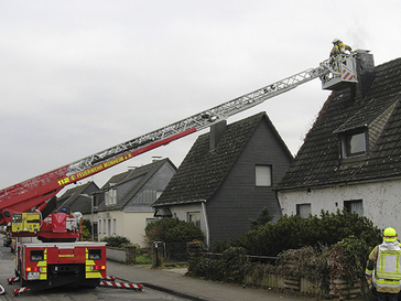 Beim Eintreffen des ersten Löschzugs drangen Rauch und Flammen aus der Außenverkleidung des Kamins. Die Feuerwehr ging über die Drehleiter zur Brandbekämpfung vor, demontierte Teile der Außenverkleidung und deckte das Dach teilweise ab. Eine Brandausbreitung auf dem Dachstuhl konnte verhindert werden.