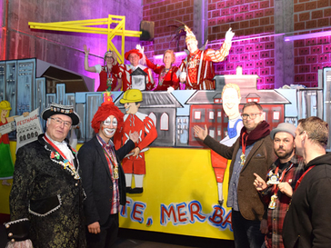 Die Übergabe fand erstmals in der Fahrzeughalle auf dem neuen Gelände des städtischen Betriebshofs statt. Bunte Scheinwerfer tauchten die hohe Halle in stimmungsvolles Licht. Auch der Gänselieselwagen hat thematisch das diesjährige Sessionsmotto der Gromoka aufgenommen. Aus „Wollen wir wetten, wir werden Monhattan” wurde „Wollen mer wette, mer bau’n ne Feierstätte!”. Bürgermeister Daniel Zimmermann schmunzelte über die eigene Darstellung: „Ich weiß zwar nicht, wer mir den Presslufthammer in die Hände gemalt hat, aber ich verspreche: Gemeinsam werden wir die Stadthalle bauen!” Zu Säge, Hammer und Bohrer griff erneut das bewährte Team um Rolf Jacob, der, obwohl inzwischen schon im Ruhestand, seit 1969 am Wagenbau beteiligt ist. Unterstützt wurde er vor allem von Sebastian Schwanke, Andreas Schulz und Stefan Goller. Bei Würstchen und frisch Gezapftem wurde die Einweihung ausgiebig gefeiert. Für die Stimmung sorgten zahlreiche heimische Tanzgarden, Prinz Guido I. und Prinzessin Petra mit ihrem Gefolge. (bh)