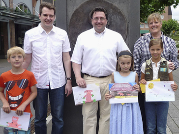 Für ihre tollen Bilder erhielten die Kinder aus den Händen der CDU-Ratsvertreter Karin Rohrbeck und Daniel Rohrbeck sowie des stellvertretenden Vorsitzenden Thomas Hoven Spielwarengutscheine. Es freuten sich Felix Jakubiak, Katharina Brämer und Luna Seidenstecher (auf dem Foto von links nach rechts). Ebenfalls einen Gutschein erhielt Julia Tinnefeldt (nicht auf dem Foto zu sehen). Auch beim nächsten Trödelmarkt der CDU Immigrath am 15. und 16. September in der Stadthalle wird es den Christdemokraten zufolge wieder tolle Aktionen für Kinder geben.