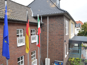Zum Jahrestag der Verkündung des Grundgesetzes vor 71 Jahren wurden am 23. Mai die Flaggen vor dem Rathaus auf Vollmast gesetzt.