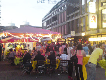 „Und die Karibik-Nacht brachte diese Urlaubsgefühle direkt nach Langenfeld. Bei schönstem Sonnenschein freuten sich die Mitglieder der Jungen Union Langenfeld über zahlreiche Besucher an ihrer Cocktailbar neben der ´Mack-Stele´“, ist man zufrieden bei der JU, wenn man auf den 7. Juli zurückblickt. Der CDU-Nachwuchs war in diesem Jahr direkt mit mehreren Zelten gekommen. Drei Tonnen Sand wurden angeliefert, Palmen vom Berghausener Blumentopf besorgt, Sitzmöglichkeiten zum Verweilen, karibische Musik und leckere Cocktails wurden geboten. Auch für die Kleinsten war dank eines Planschbeckens und eines Gummi-Krokodils etwas dabei. „Wir haben uns sehr über den Ansturm an unserem Stand gefreut“, so Sebastian Köpp, Vorsitzender der Jungen Union Langenfeld. „Da Ausschreitungen wie im letzten Jahr ausblieben, konnten wir alle ein schönes Fest genießen.“ Am Stand der Jungen Union hingen eigens Hinweise zum Alkoholkonsum von Minderjährigen: „Wir haben darauf aufmerksam gemacht, dass Alkohol nicht an unter 18-Jährige verkauft wird und im Zweifel nach dem Ausweis gefragt.“ Der Stadtverband der Jungen Union „freut sich schon jetzt auf die nächste Karibik-Nacht in Langenfeld“.