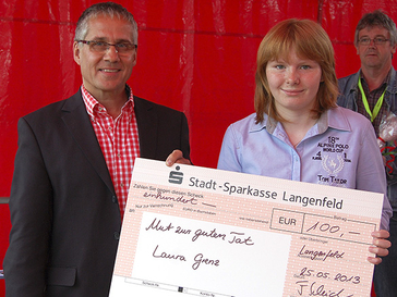 Der Verlust des Geldes spielt dabei in den meisten Fällen die untergeordnete Rolle, zumal man auch Gefahr läuft, mit den vom falschen Finder missbrauchten persönlichen Unterlagen wie Personalausweis, Scheckkarte oder Führerschein Opfer einer Straftat zu werden. Die elfjährige Laura Grenz hat Ende des vergangenen Jahres eine solche Geldbörse mit einer erheblichen Bargeldmenge gefunden und keinen Moment gezögert, sie mit ihrer Mutter zur Polizei zu bringen. Obwohl sie nie wieder etwas vom Eigentümer gehört hat, würde sie jederzeit wieder so handeln. Ihre Patentante nahm diese Ehrlichkeit zum Anlass, Laura im Rahmen der Aktion „Mut zur guten Tat“ vorzuschlagen, mit der die Stadt Langenfeld seit 2010 Kinder und Jugendliche auszeichnet, die durch besondere Zivilcourage ein Vorbild für den Nachwuchs und für die Erwachsenen darstellen. Obwohl es für Laura, wie sicherlich für viele Kinder, selbstverständlich war, diese Geldbörse über die Abgabe bei der Polizei dem Besitzer zurückzubringen, stellt es für die Verantwortlichen bei der Stadt Langenfeld ein hervorragendes Beispiel dar, das es wert ist, mit dieser Auszeichnung bedacht zu werden. Im Rahmen des 31. Internationalen Kinder- und Familienfestes am vergangenen Wochenende wurde Laura Grenz von Bürgermeister Frank Schneider als Preisträgerin der diesjährigen Aktion prämiert.