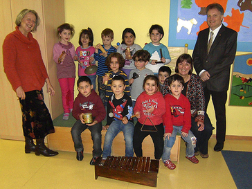 Christa Steinbüchel, Präsidentin des Lions Club Monheim am Rhein, und Peter Wittkowski, Schatzmeister des Lions-Fördervereins Monheim am Rhein – Alte Freiheit – e.V., haben eine Spende von 2900 Euro aus der Adventskalenderaktion 2012 an Inge Nowak von Mo.Ki – Monheim für Kinder übergeben. Da ein Teilbetrag von 1000 Euro für das Einstudieren eines Musicals durch KiTa-Kinder bestimmt ist, haben die Kinder als Dankeschön für die Spende schon einmal ihre Musikinstrumente vorgeführt. Der Lions-Förderverein ist durch die großzügige Unterstützung der Monheimer und Baumberger Unternehmen und die rege Nachfrage nach dem Kalender durch die Monheimer Mitbürgerinnen und Mitbürger in diesem Jahr in der glücklichen Lage, insgesamt 7000 Euro aus der Adventskalenderaktion über karitative Einrichtungen an Bedürftige und gemeinnützige Projekte in Monheim am Rhein zu verteilen.