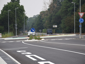 Kreisverkehr Bleer Straße/Berliner Ring: Die Baustellenampeln sind abmontiert, es herrscht freie Fahrt.