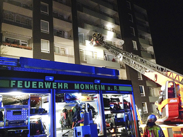 Insgesamt 14 Bewohner wurden durch Rauchgase verletzt, 9 Personen mussten nach notärztlicher Erstversorgung in Krankenhäuser transportiert werden. Im Abschnitt Rettungsdienst wurden fünf Rettungswagen und drei Notarzteinsatzfahrzeuge zum Einsatz gebracht. Der Einsatzleiter der Feuerwehr wurde durch den stellvertretenden Kreisbrandmeister Mirko Braunheim, den stellvertretenden Wehrleiter Torsten Schlender als diensthabenden A-Dienst und durch die leitende Notärztin des Kreises Mettmann unterstützt. Die Feuerwehr Monheim am Rhein war mit 12 Fahrzeugen und 44 Feuerwehrangehörigen vor Ort. Die Alarmstufe wurde mehrfach erhöht, so dass die gesamte Freiwillige Feuerwehr Monheim zum Einsatz kam. „Einige Bewohner haben nach Erkennen des Brandes in Panik die Wohnungstüren nicht wieder verschlossen, so dass sich der Brandrauch über die Flure schnell in den Wohnungen ausbreiten konnte. Die Rettung über die Drehleitern war somit unumgänglich. Bewährt haben sich in dem Zusammenhang die durch Vorbeugenden Brandschutz und Bauaufsicht nachgeforderten Stellflächen für die Drehleiter, die somit zur Bildung des zweiten Rettungsweges optimal eingesetzt werden konnte“, so Brandamtsrat Torsten Schlender.