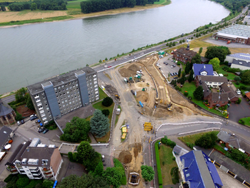 Für den neuen „Stadteingang” an der Rheinpromenade liegen nun schon zahlreiche Leitungen an der richtigen Stelle. In den vergangenen Monaten wurden Versorgungsleitungen und Kanal, die unter der dem vorhandenen Teil der Krischerstraße lagen, auf die neue Straßentrasse umgelegt. Ab voraussichtlich Dienstag, den 18. Oktober, kann die Vollsperrung von Krischer- und Niederstraße sowie der Straße An d'r Kapell aufgehoben und die alte Fahrbahn wieder freigegeben werden.