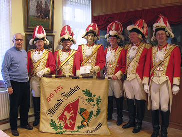 Heimatbund-Vorsitzender Dieter Sturm freute sich sehr über die Erweiterung der heimatkundlichen Sammlung. Der Vorstand der Altstadtfunken fand sich im Deusser-Haus ein, um dem Heimatbund die Dauerleihgabe zu übergeben. „Wir wollen damit unseren Beitrag zur Erhaltung des Brauchtums und zur Dokumentation des Rheinischen Karnevals leisten. Unser Jubiläum war hierfür ein geeigneter Anlass“, freut sich Altstadtfunken-Sprecher Torsten Schlender. Das Deusser-Haus ist immer sonntags für Besucher geöffnet.