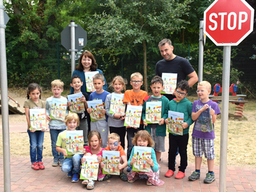„Straßengeschichten mit Moritz und Luise”: So nennt sich ein Verkehrsbuch für Kinder ab fünf Jahren. Tatsächlich beginnt für den Nachwuchs in diesem Alter bald auch ein neuer Lebensabschnitt. Die Einschulung naht. Das heißt auch ein bisschen mehr Selbstständigkeit. Der Schulweg wird häufig Stück für Stück allein zurückgelegt. Und da kommt so eine Verkehrsfibel gerade richtig. Deswegen hat die Stadt Monheim am Rhein nun wiederholt alle Kitas mit „Moritz und Luise” bestückt. Darüber hinaus bekommt jedes Vorschulkind ein eigenes Exemplar. Den Eltern und dem Erziehungspersonal wird ein Leitfaden an die Hand gegeben, in dem Kinder nicht nur in Wort und Bild, sondern aktiv durch vielfältige Fragen und Spiele einbezogen werden. Stellvertretend für alle Kitas überreichte nun Alexander Groß vom zuständigen Bereich des Rathauses die Verkehrsfibeln in der Kita „Schwalbennest”. (nj)