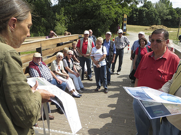 Es ging durch die veränderte Landschaft der Urdenbacher Kämpe. An der neuen Deichöffnung erwarteten die Sozialdemokraten die Geschäftsführerin der Biologischen Station Haus Bürgel, Elke Löpke, die an Ort und Stelle und beim Rundgang Erklärungen zum Projekt „Auenblicke“ abgab. Dass sich die Lebensbedingungen auch für den Eisvogel durch die Rückkehr zur natürlichen Entwicklung nun verbesserten, konnte das Mitglied des AG 60 plus-Vorstandes Matthias Fischer nur bestätigen, denn er hatte als erster der Wandergruppe den bunten Vogel erspäht. Zum Schluss kehrten die Monheimer Sozialdemokraten zu Kaffee und Erdbeerkuchen im Lokal „Hotte Hü“ in der Reitanlage Hellerhof ein.