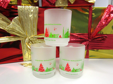 Dabei feierte auch der Langenfelder Weihnachtsmarktbecher Premiere. Erstmals gibt es einen lokalen Weihnachtsmarktbecher aus satiniertem Glas, mit der Langenfelder Skyline und adventlichen Motiven geschmückt. Der Becher lädt nicht nur auf dem Weihnachtsmarkt in der ShoppingMitte zum gemütlichen Glühwein-, Kinderpunsch- oder Kakaotrinken ein, sondern kam bzw. kommt auch auf den Adventsmärkten in Immigrath, Berghausen und Wiescheid zum Einsatz. Aufgrund der aufwändigen Herstellung beträgt das Pfand zwei Euro. Für diesen Betrag kann der 0,2-Liter-Becher auch im Bürgerbüro als Präsent erworben werden.