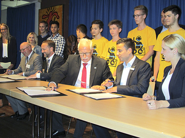 Die Peter-Ustinov-Gesamtschule und die Lidl Vertriebs-GmbH & Co. KG haben feierlich ihren Kooperationsvertrag unterzeichnet.